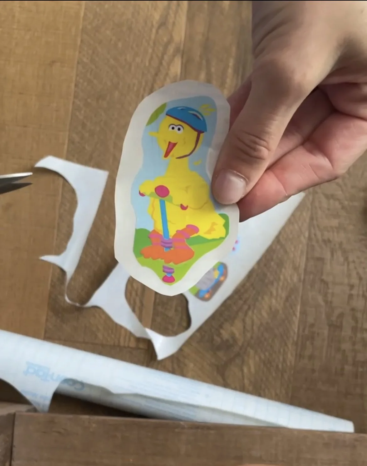 Place it on contact paper. Peel back the sticky top, place pictures down, and press the sticky side down.